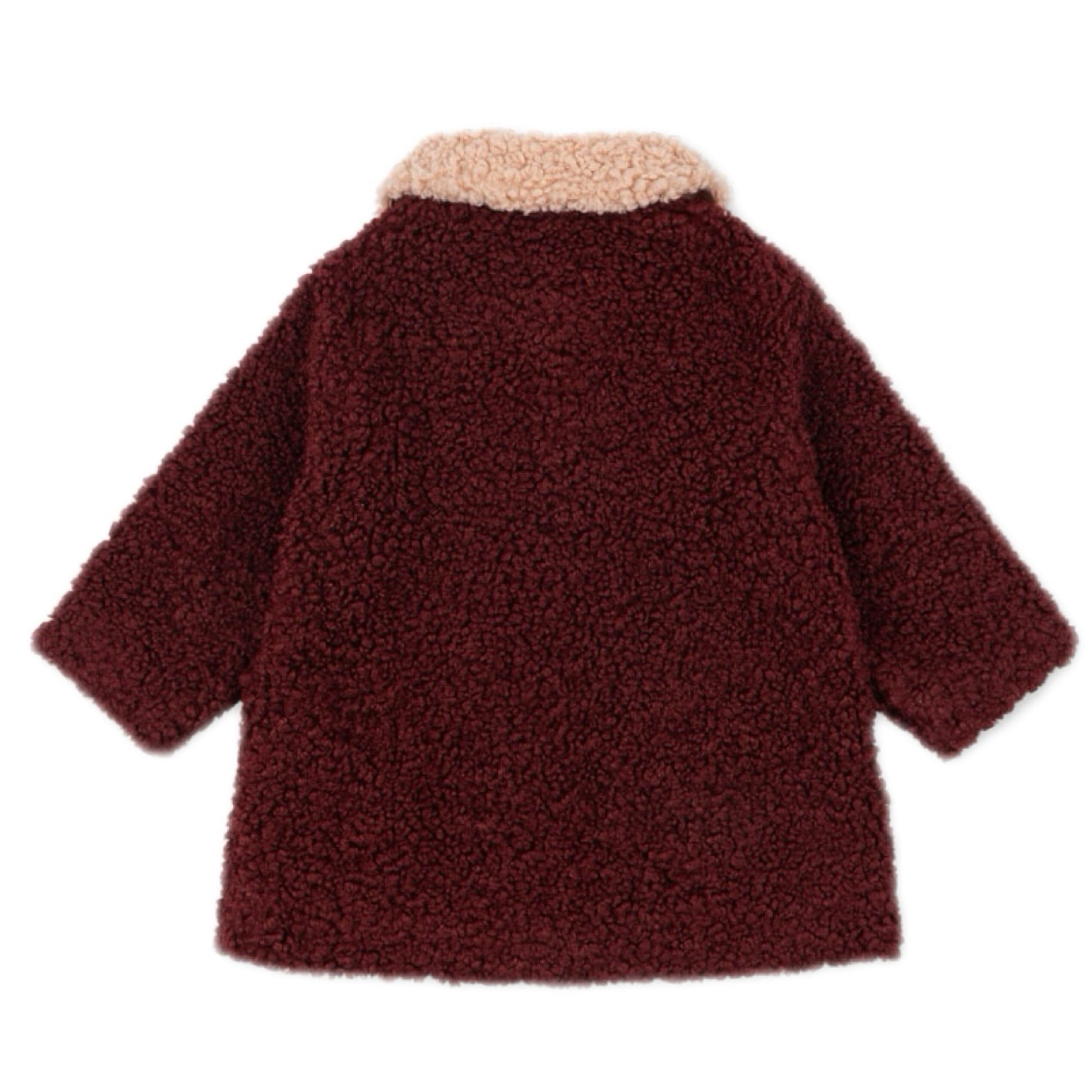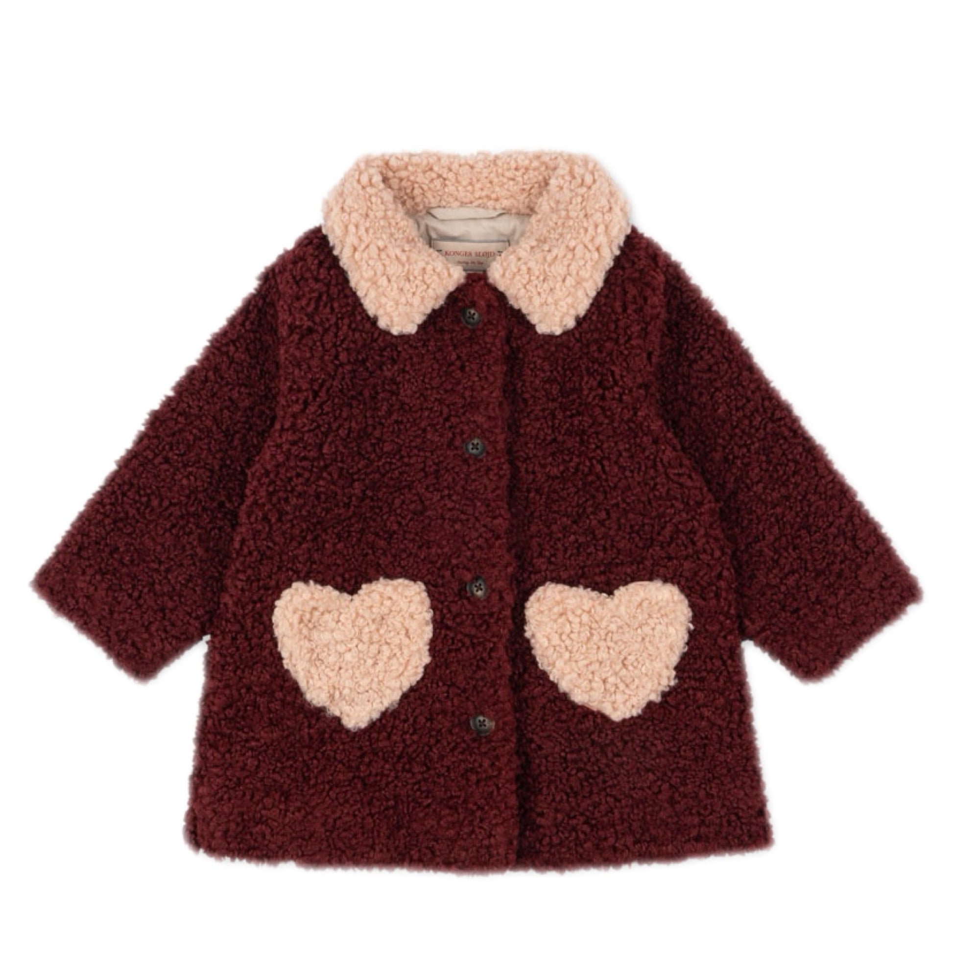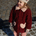 Cozy yet sweet, the Calin Heart Pocket Coat in Cabernet is made from soft, fluffy fabric with a rounded collar, button front and two heart shaped pockets. Designed with a gentle A-line silhouette, it's cozy, playful and made for everyday adventures.