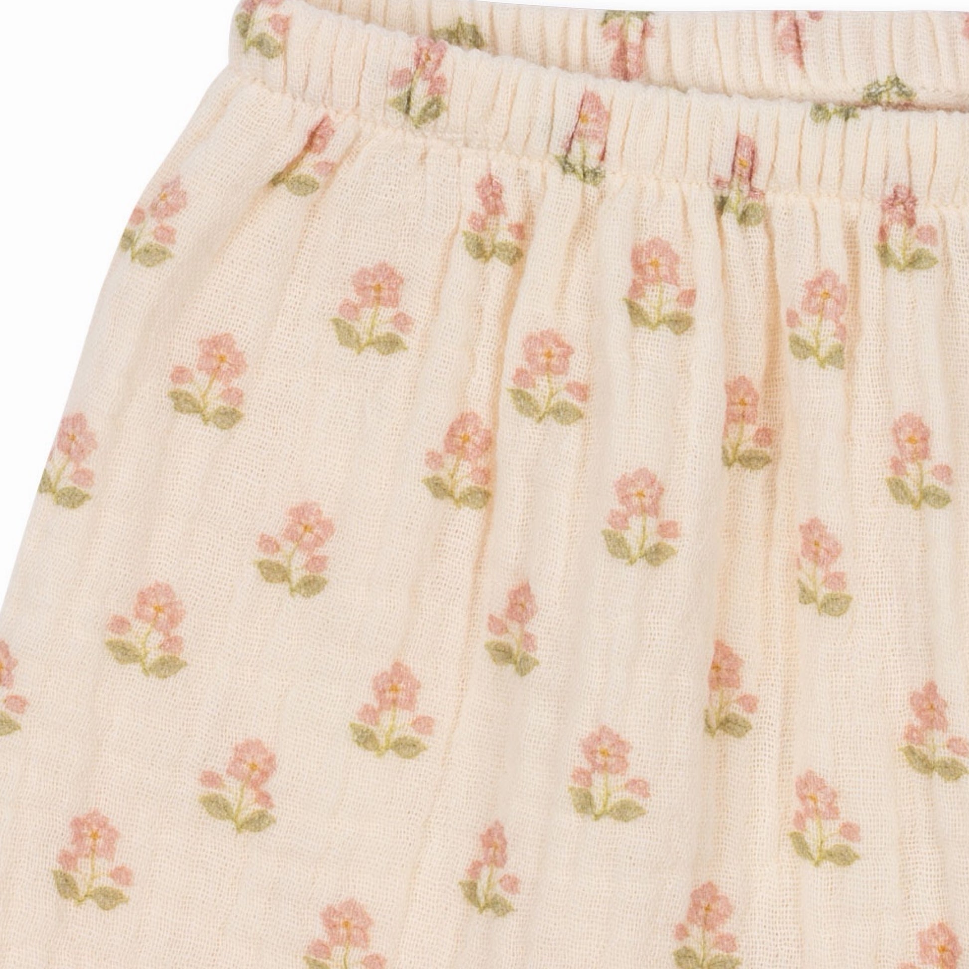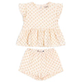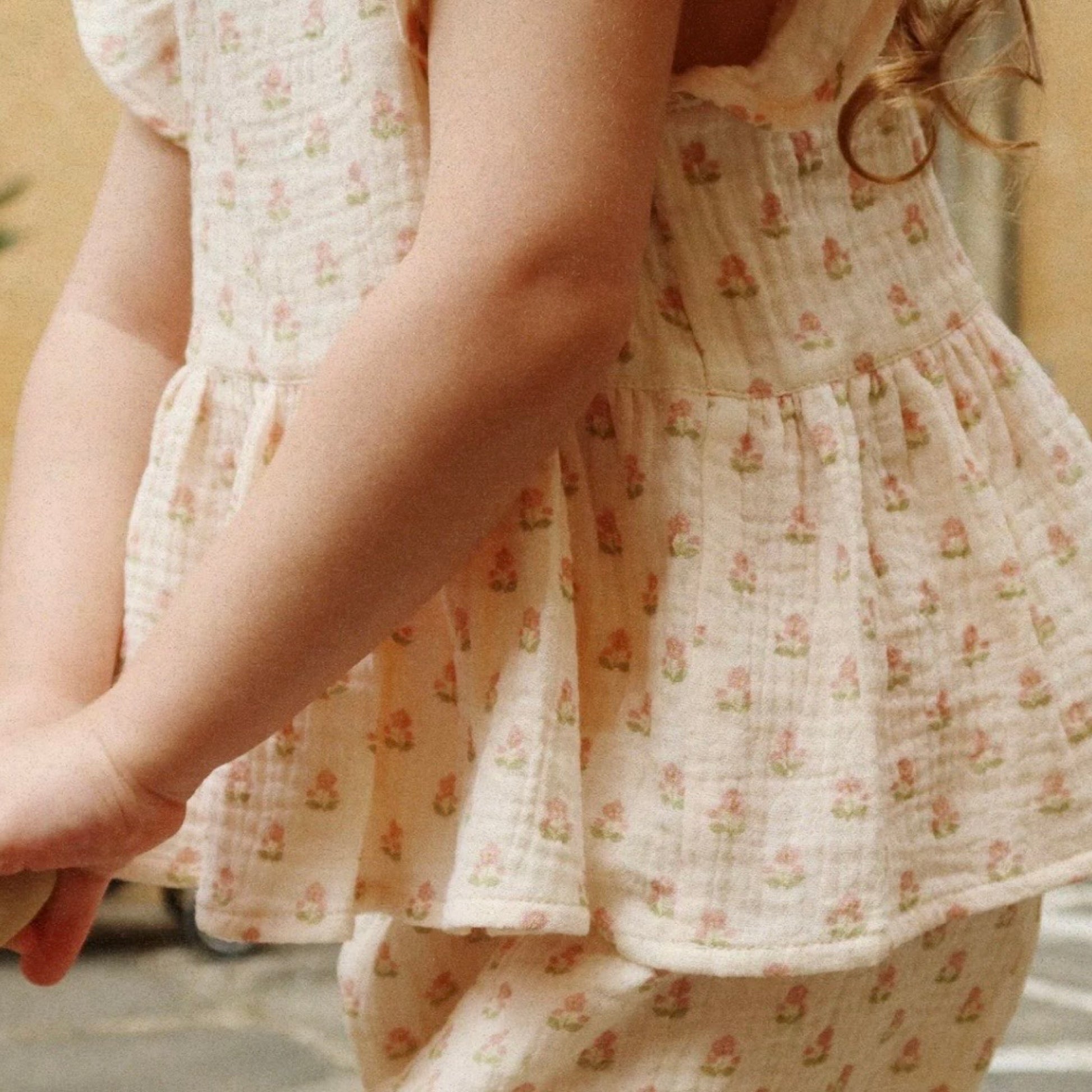 This soft Top and shorts set in Carta Rosa is made from a light and breathable organic cotton muslin. The Coco Top is designed in a delicate peplum silhouette, and the elastic waist shorts feature a ruffle bottom detail, all in the sweetest floral print.