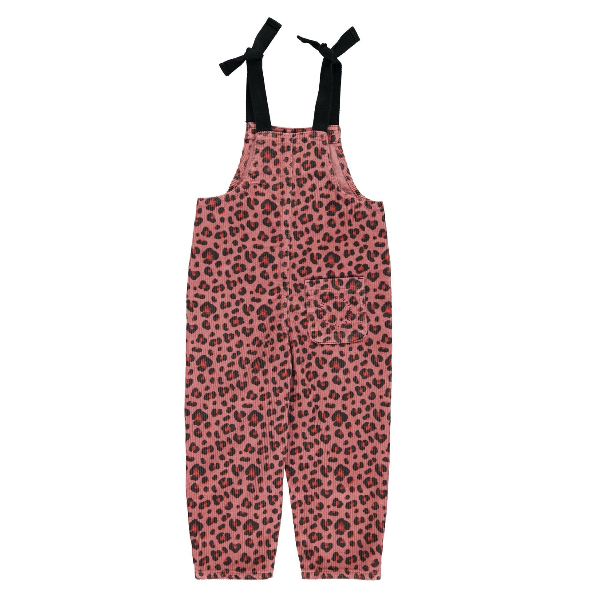 Must-have cord overalls in Pink animal print. Style with a black ribbed top. Snap bottom for easy diaper changes.