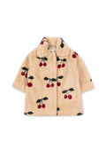 Luxe faux fur swing coat with printed cherries. This super soft coat will keep her cozy and warm.