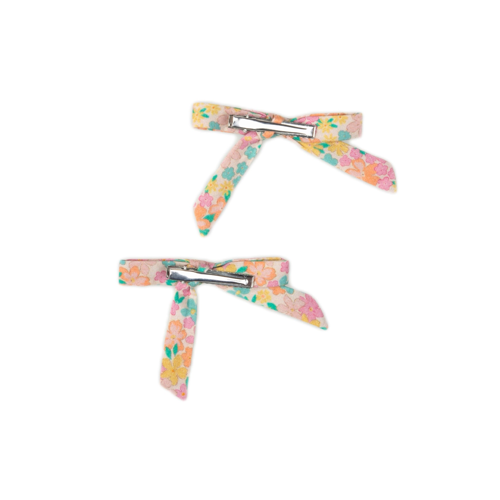 Set of 2, 3 1/2 inch bows with alligator clips in Emma Floral Mint.