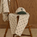 Daisy print straight leg denim with elastic back. Pairs perfectly with the ribbed top in pine green.