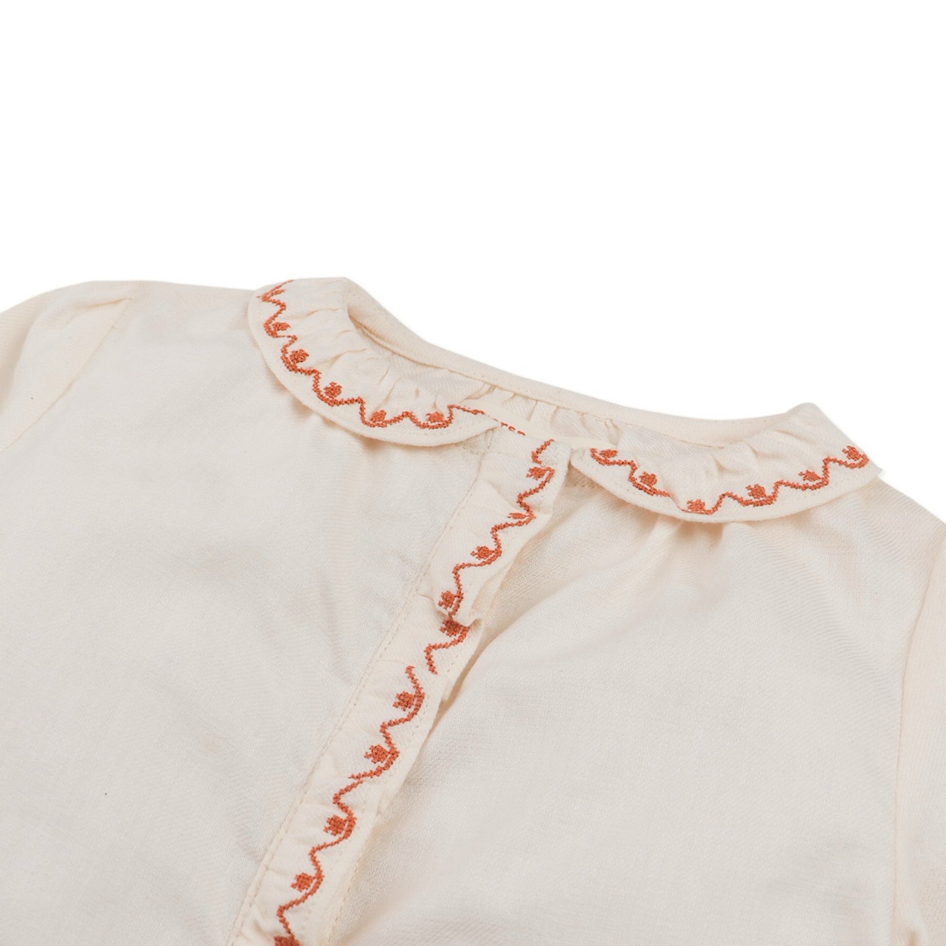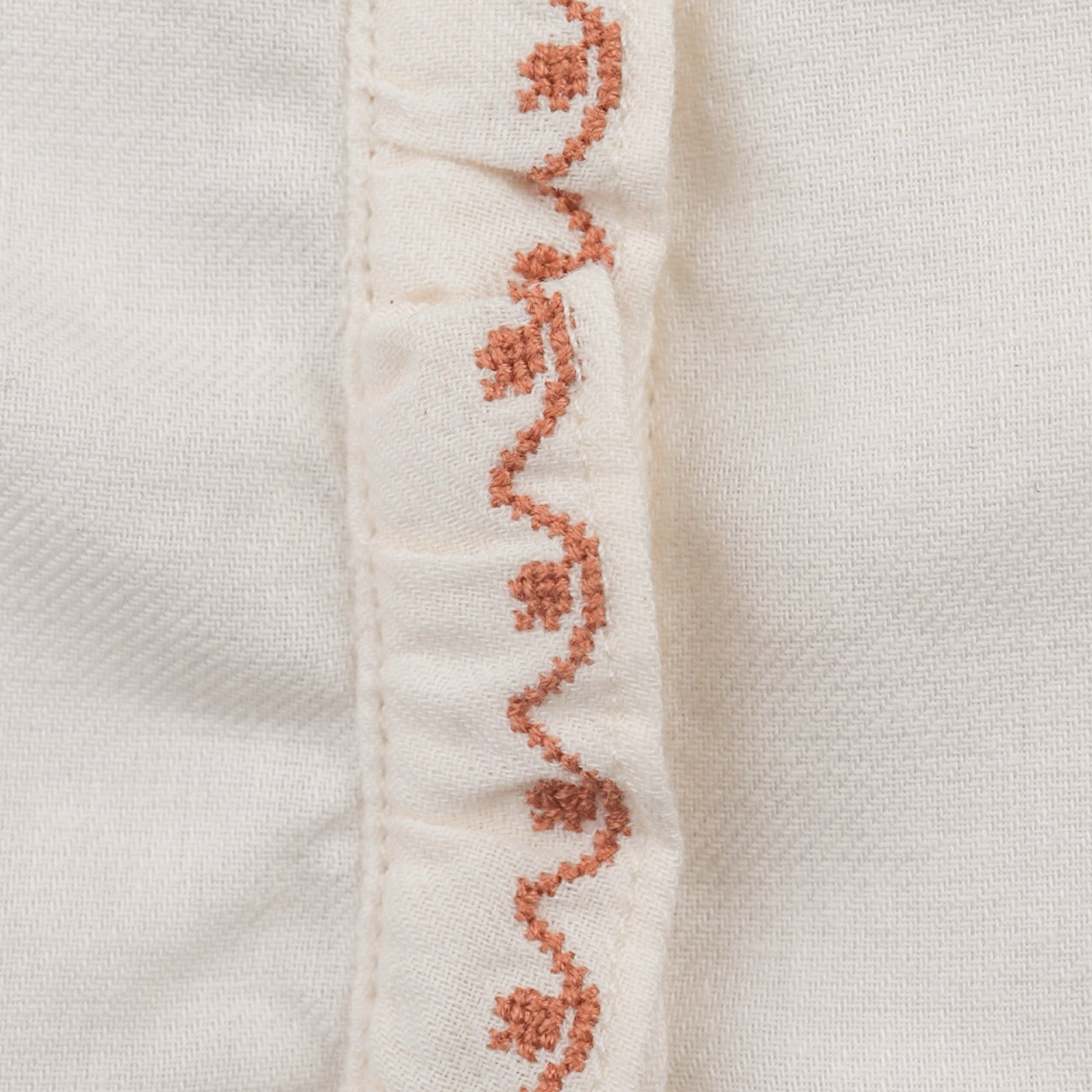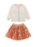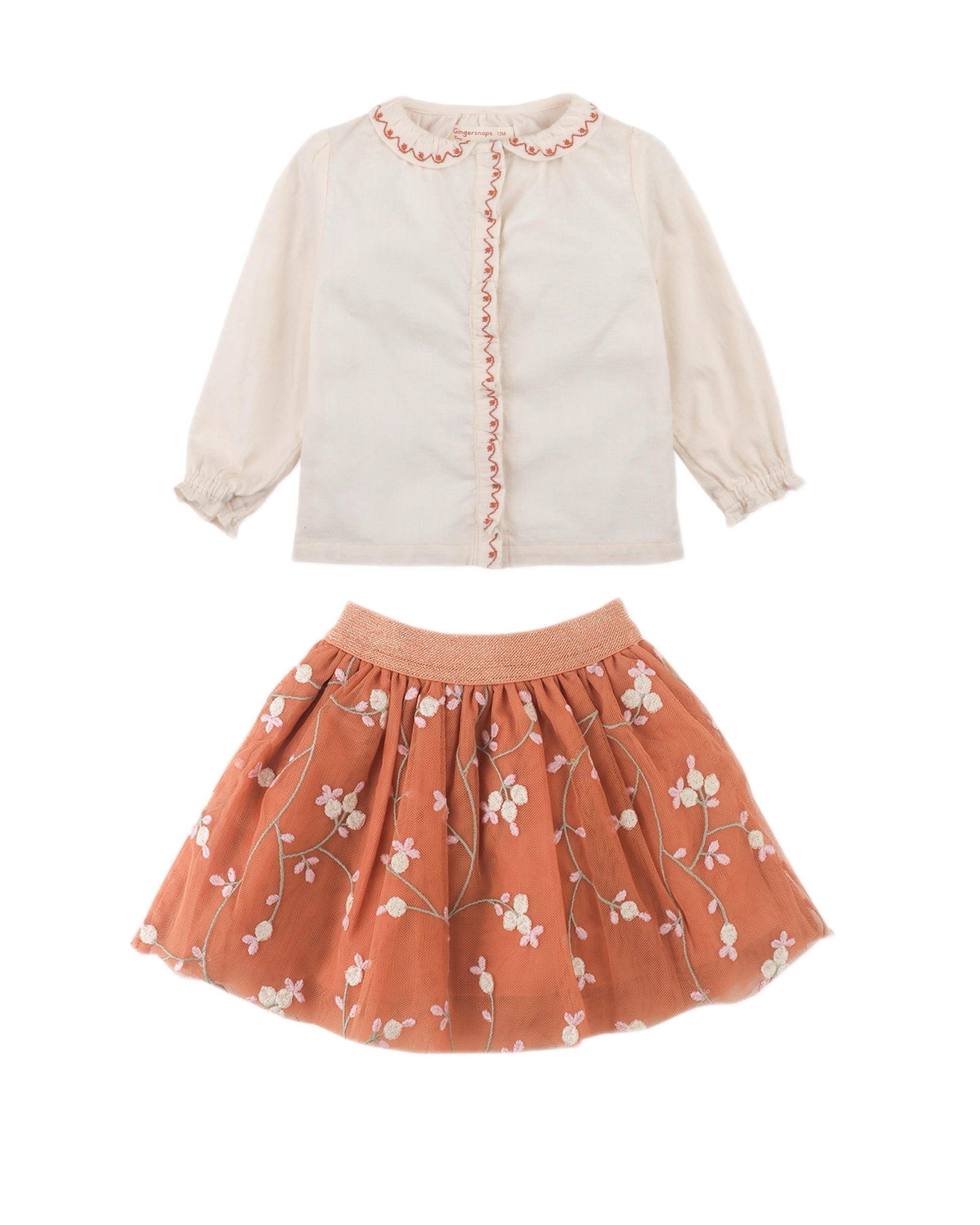Button down blouse in Ivory and tulle skirt in Gingerspice, both feature rich embroidery details. Tuck in for a neat and festive look.