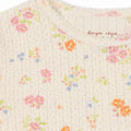 Soft 100% organic cotton basics in Nonoka, an ivory pointelle base with a beautiful floral print, and decorative picot hemlines.