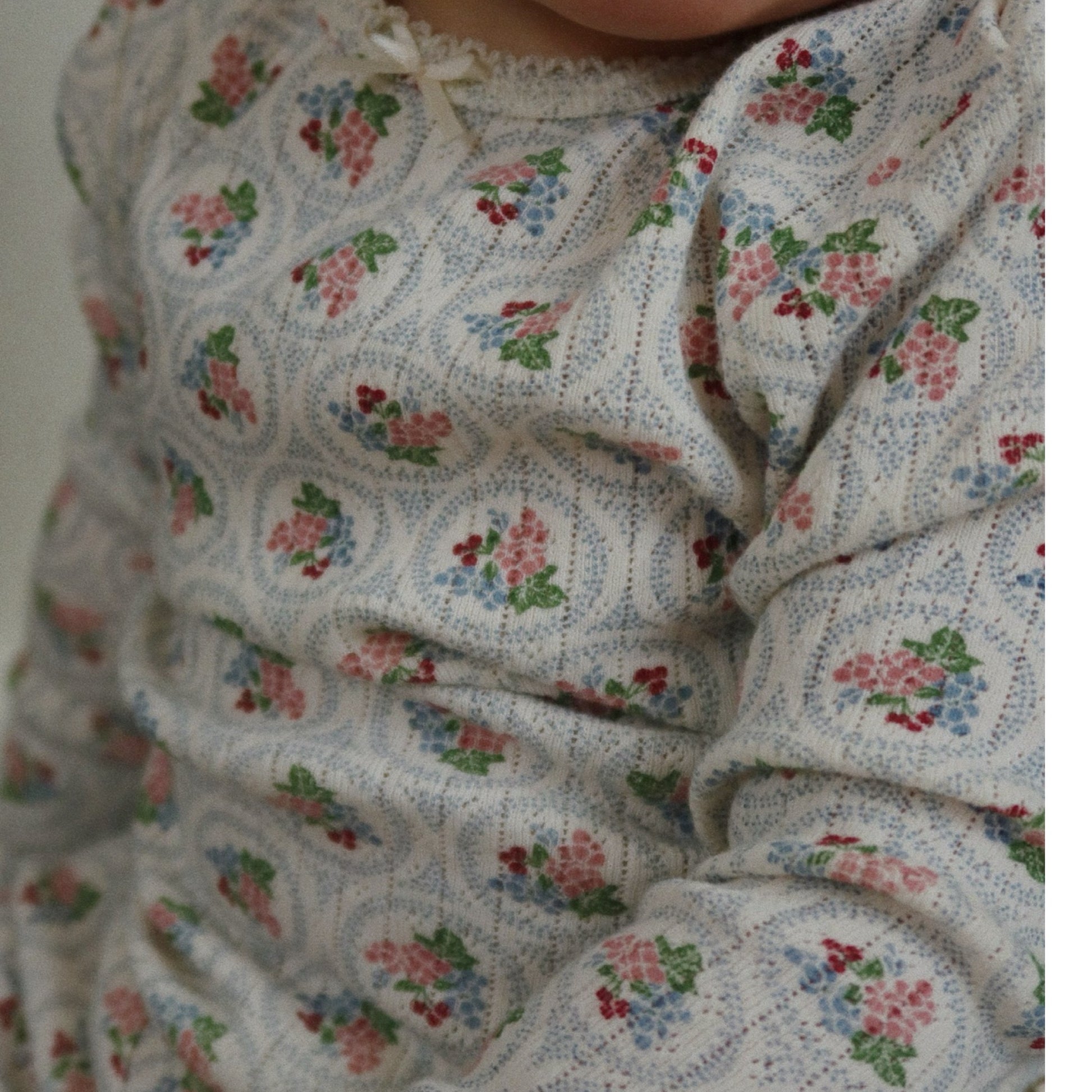 Organic cotton pointelle onesie and pant set in Verona Blues. A perfect elevated basic set.
