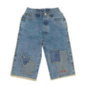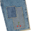 Jeans in a vintage wash that feel perfectly lived-in, with handmade patch details.