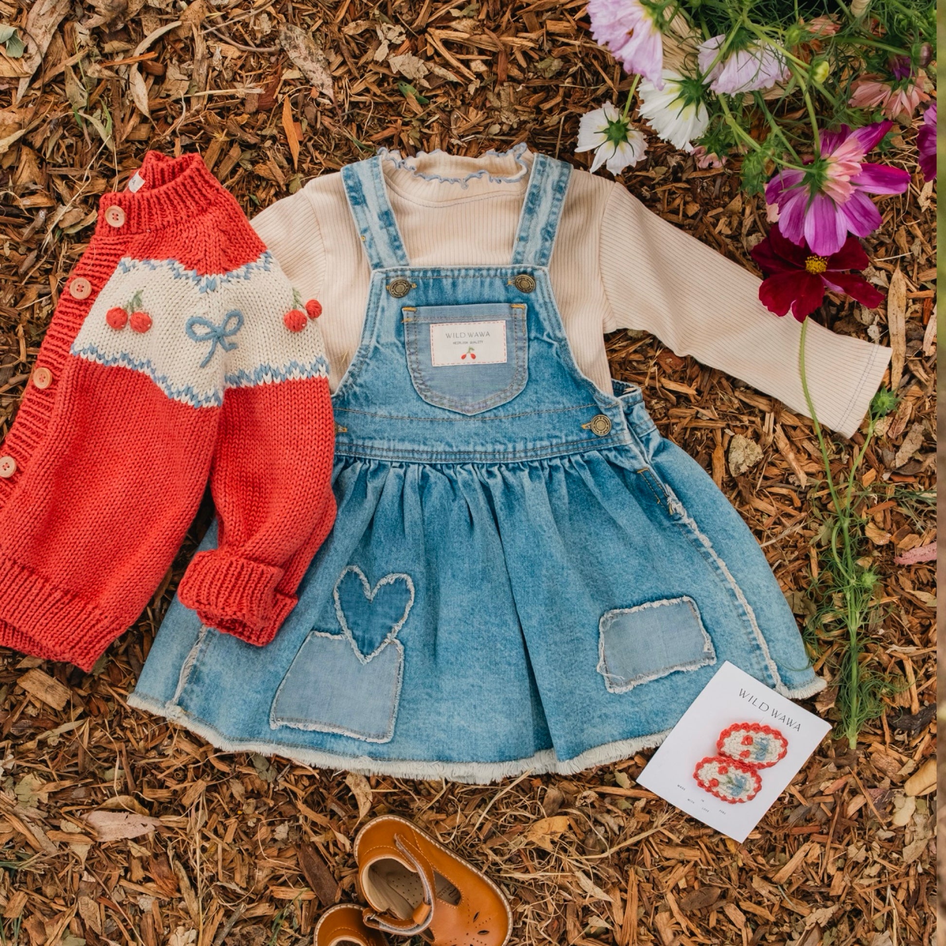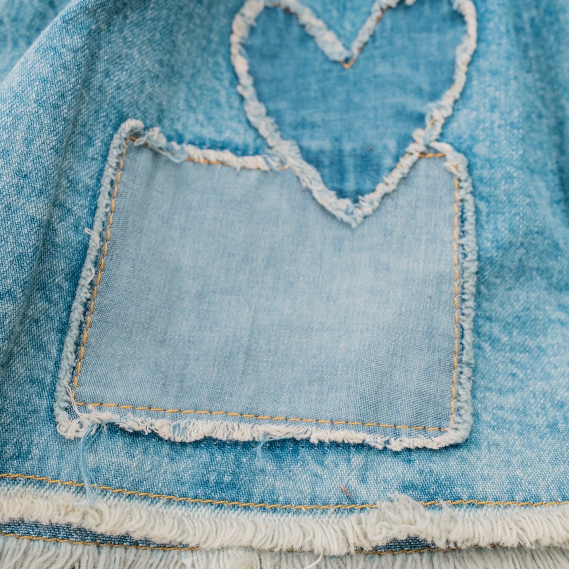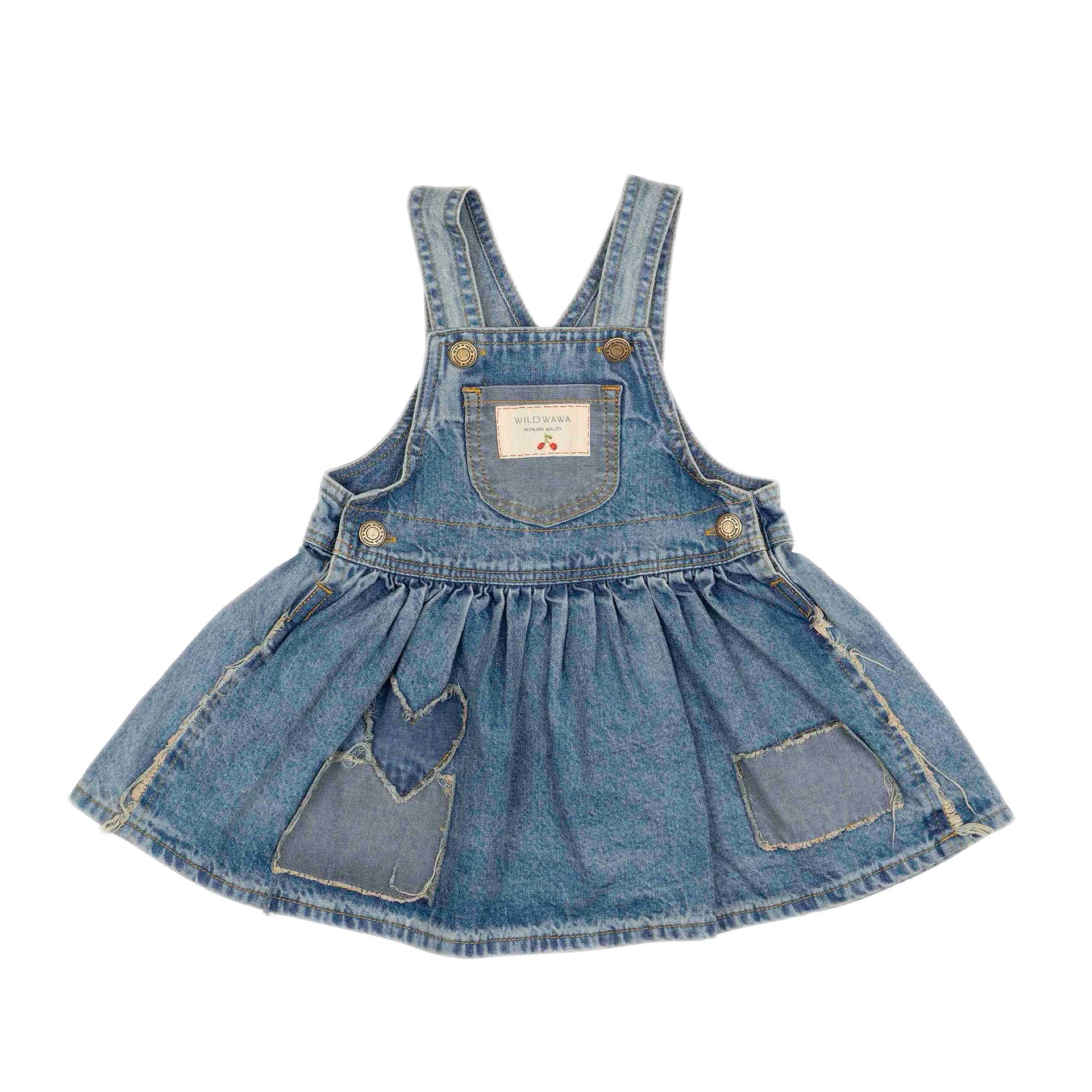 Overalls dress in a vintage wash that feels perfectly lived-in, with handmade patch details.