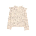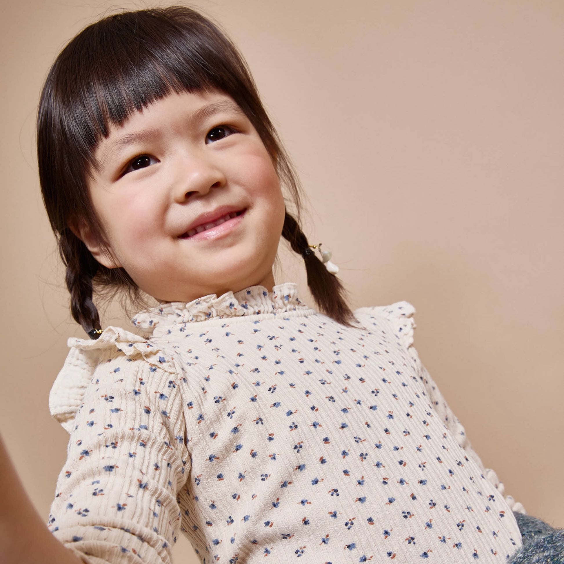 Ribbed T-shirt in Ivory floral, with detailed ruffled edges for an elegant look.