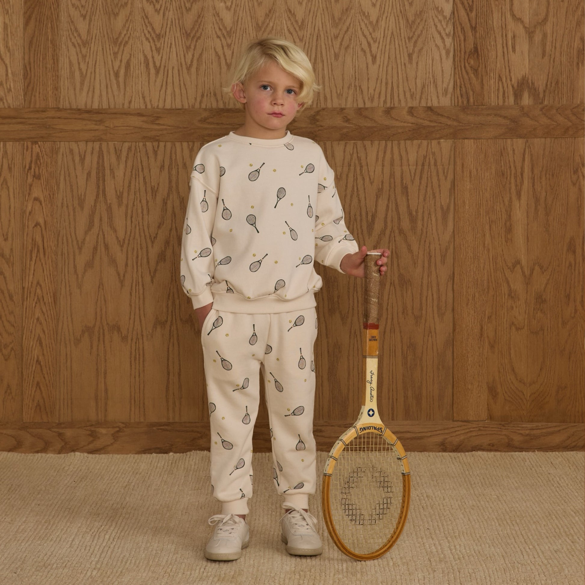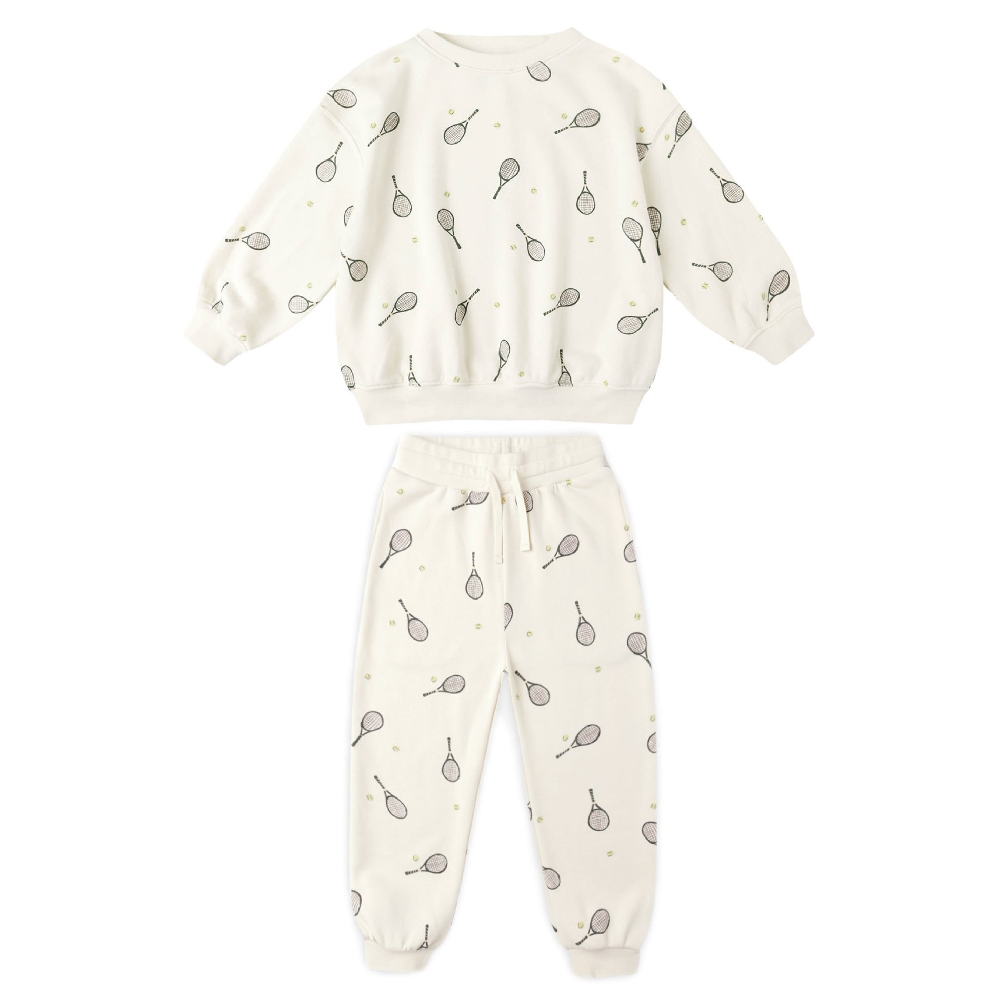 Relaxed sweatshirt and jogger sweat pant in tennis print.
